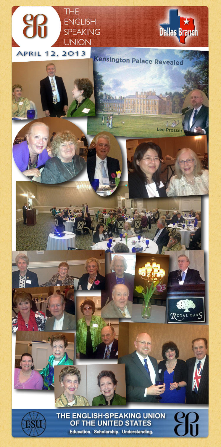 Dr. Lee Prosser's Presentation about Kensington Palace, April 12, 2013, Royal Oaks Country Club, Dallas, Texas.